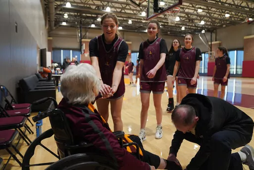 During a recent practice, she watched from the sideline in her wheelchair. On a break, the players on the men's and women’s teams took turns shaking her hand.