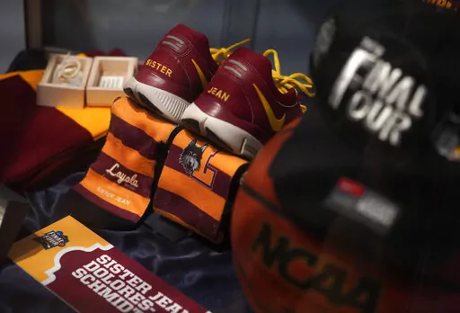 She arrived in a wheelchair for the interview at her office in the university's student center. She wore purple Nike Air Max sneakers with the words “Sister” and “Jean” written on the back, and her maroon and gold Loyola scarf that often gets compared to Harry Potter’s. She smiled warmly and waved to prospective students and shook hands with current students, asking them about their classes.