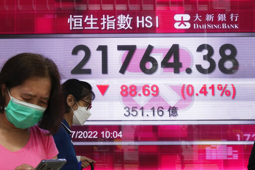 Major benchmarks fell across Asia. Oil prices recouped some lost ground after plunging on Monday. Analysts said markets were focusing on a variety of risks, including inflation, oil prices, moves by the U.S. Federal Reserve and other central banks on interest rates, political developments in Britain and worries over COVID-19.