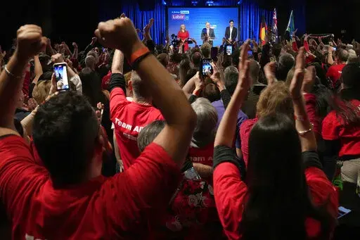 CANBERRA, Australia (AP) — Australia’s center-left opposition party toppled the conservative government after almost a decade in power, and Prime Minister-elect Anthony Albanese in his Saturday election victory speech promised sharper reductions in greenhouse gas emissions while he faces an early foreign policy test.