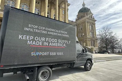 It also parked a truck containing a portable billboard outside the Iowa Capitol on Monday, encouraging support of the bill to stop Chinese-made chemicals from “infiltrating American farms.”