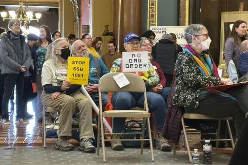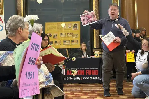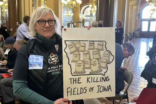 Opponents, including those who rallied Monday in Des Moines, say the bills would limit the rights of people to hold companies accountable if their products cause harm. Speakers took turns telling stories of family members throughout the state who have been diagnosed with cancers and shouted out to lawmakers that Iowa's people are more important than corporate profits.