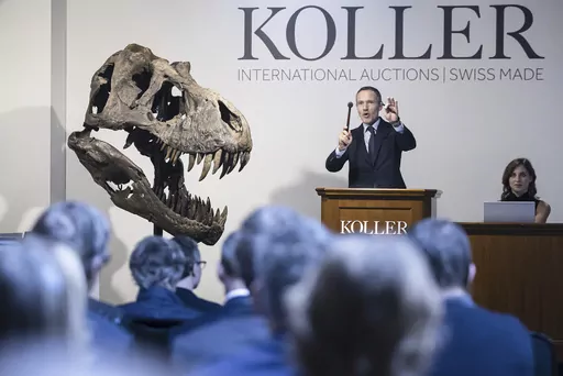 The skeleton, made up of nearly 300 bones dug up from three sites in the United States, fetched 4.8 million francs ($5.3 million) at the Koller auction house in Zurich on Tuesday. The anticipated sales price had been 5 million to 8 million francs.