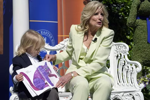 Jill Biden later visited the “reading nook,” where she read “Brown Bear, Brown Bear, What Do You See?” to the parents and children gathered there, including Surgeon General Vivek Murthy, Secretary of State Antony Blinken and Linda Thomas-Greenfield, the U.S. ambassador to the United Nations. The first lady's grandson Beau Biden held the book while she turned the pages.