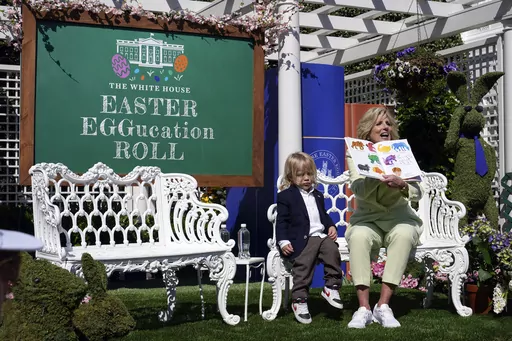 The first lady's theme is “EGGucation.” Jill Biden is a teacher and she has incorporated numerous learning opportunities into the event. “Learning doesn't only happen in a classroom, there are so many fun opportunities to learn around us every day,” she said in her remarks on the balcony, explaining that's why they turned the South Lawn into a “school community.”