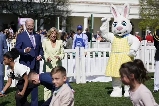 After making an early appearance on the lawn to speak with Roker after the gates opened at 7 a.m., Biden and first lady Jill Biden addressed the crowd from the White House balcony before joining the “egg-citement.” Some 30,000 people, mostly children, were expected, in nine waves of participants, ending at 7 p.m.
