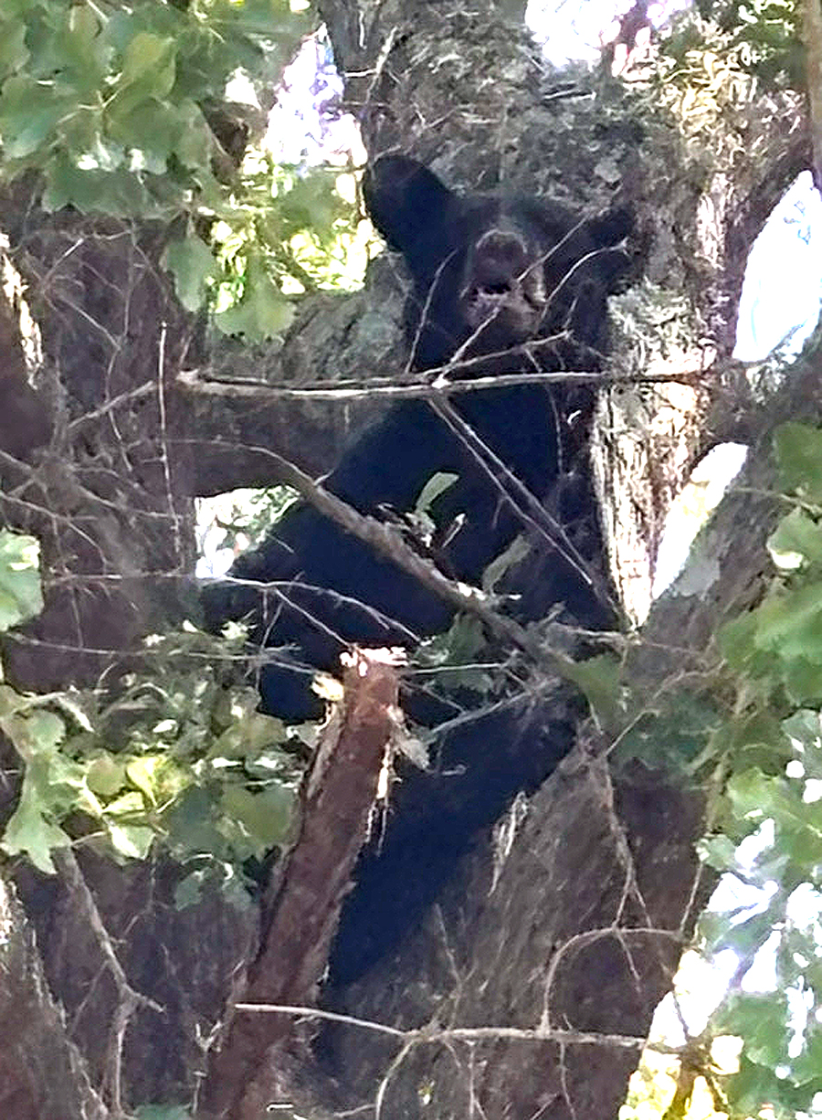 The animal was spotted by the property owner shortly after 11 a.m. The bear climbed a tree in the backyard about 11:30 a.m., and remained there until 3:30 p.m. — activity observed by the owner from the safety and comfort of a viewing area inside their home.