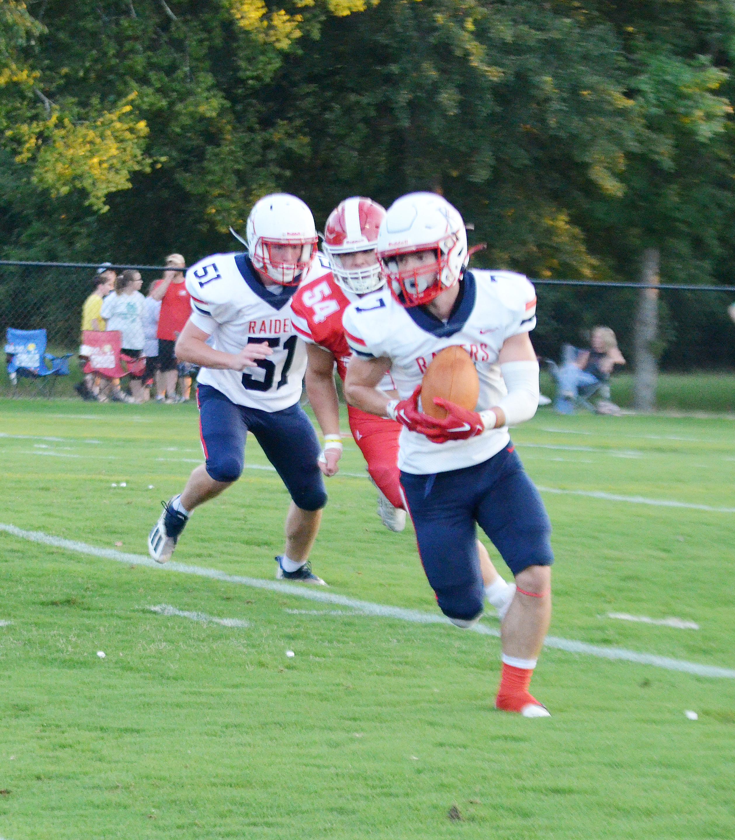 With only 14 players available for the Raiders (0-2), that theory proved true as the senior laden Rebels (2-0) jumped out to a quick 8-0 lead just 32 seconds into the game on their way to a 41-0 shutout victory.