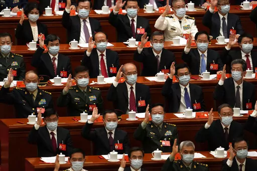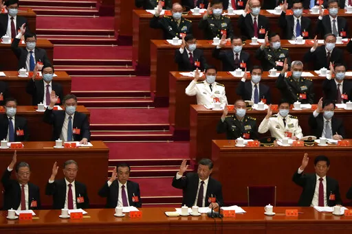 The more than 2,300 delegates to the party congress — wearing blue surgical masks under China's strict “zero-COVID” policy — met in the Great Hall of the People in central Beijing.