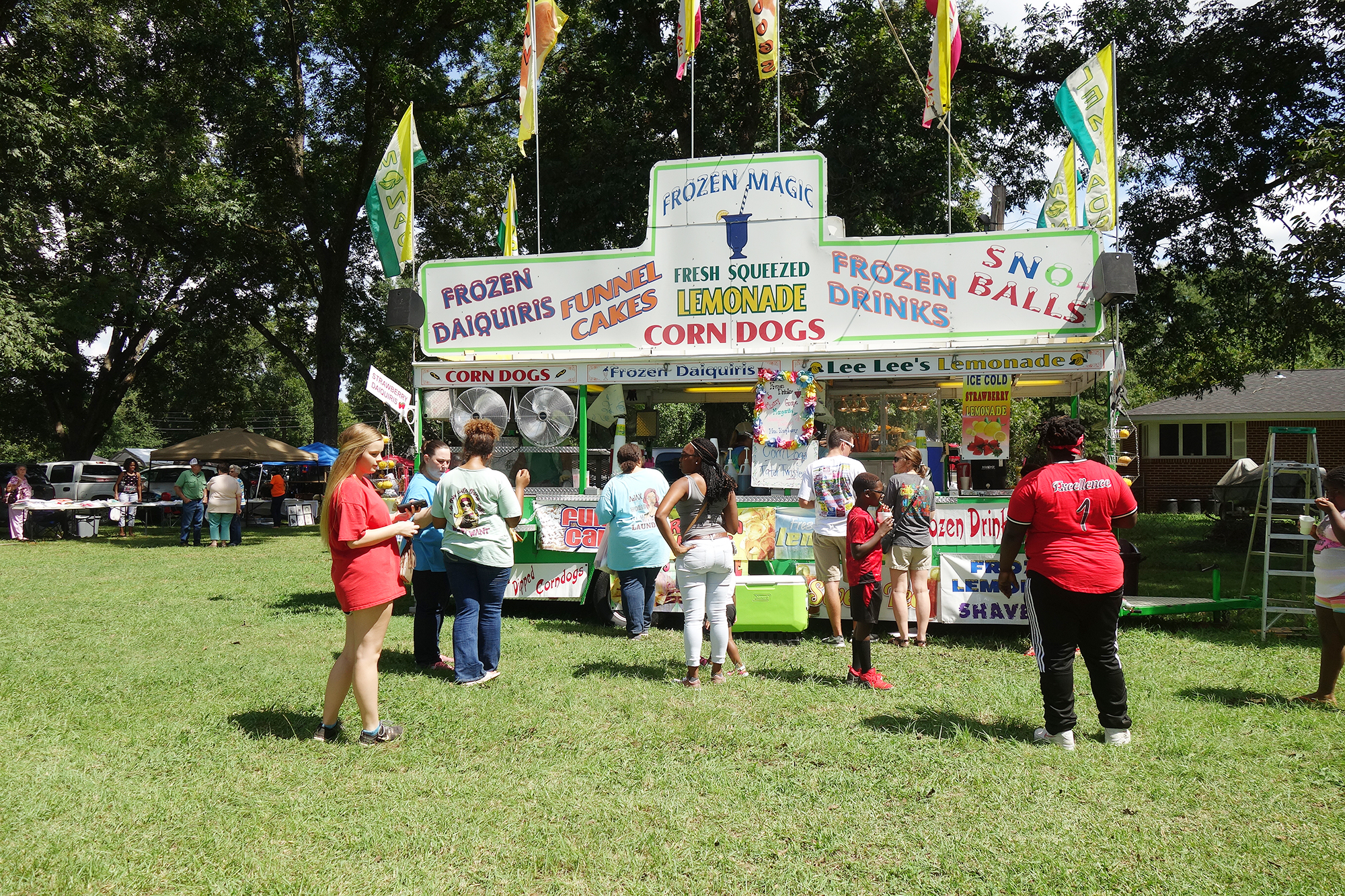 The festival is a day-long event where people come from all over to participate in fun for children, arts and crafts, and countless numbers of barbecue and other food vendors.