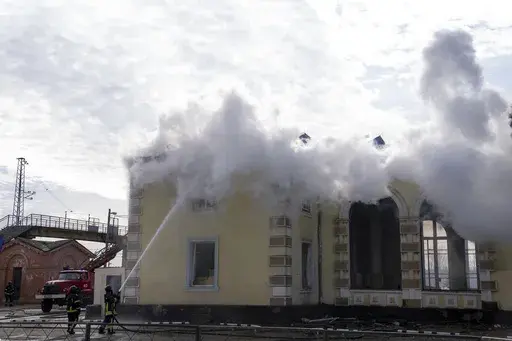 A woman was wounded and a railway station turned into a smoldering ruin amid heavy shelling in the eastern city of Kostiantynivka, according to the head of the municipal military administration. Ukraine’s public broadcaster, Suspilne, cited local police as saying that the strikes also damaged an Orthodox church, more than a dozen residential buildings and dozens of shops, a post office, schools and local government offices.