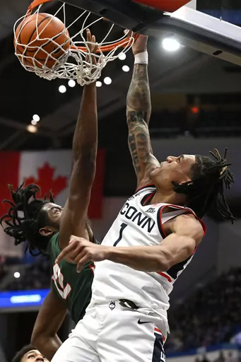 Donovan Clingan added 17 points for the Huskies (3-0) who have won 20 straight nonconference games, all by double digits. Alex Karaban chipped in with 14 points, despite spending most of the game in foul trouble.