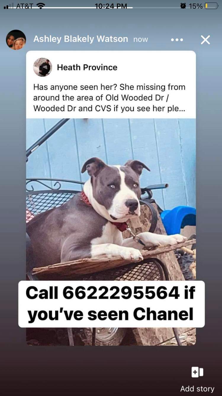 I'm looking for my brother dog if you seen her or know where she is there will be a reward to who ever safely finds her and messages me or the number etched to image ASAP MY NUMBER IS 662-752-0974