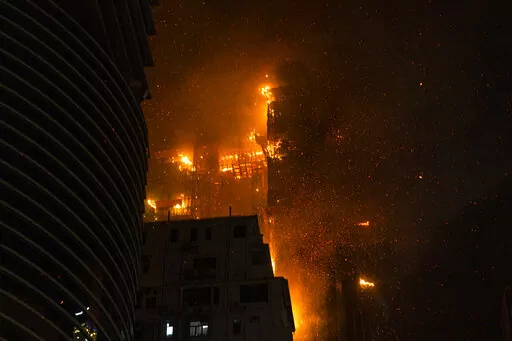This story has been updated to reflect that balconies of two buildings were caught on fire, not rooftops.