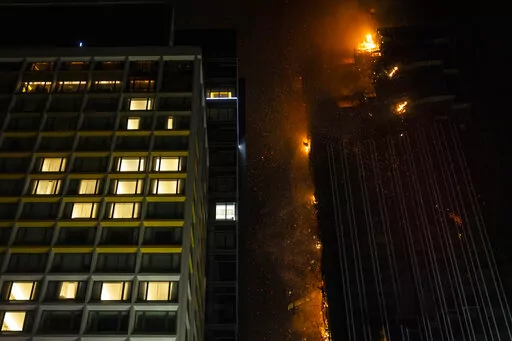 “Yesterday night was quite windy. The burning debris was blown towards five buildings by our count,” Keung said. “Two of the buildings, namely a hotel and a commercial building, saw part of their balconies catch on fire. Fortunately, our officers on standby quickly extinguished them.”