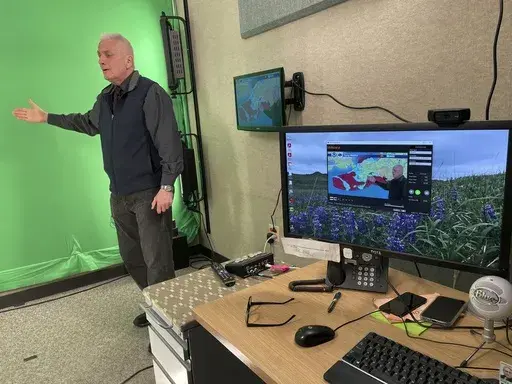 Two meteorologists produce the weather show 365 days a year, creating forecasts and maps and filming the program in three segments. Those are sent to Alaska Public Media, where technicians compile the 30-minute program.