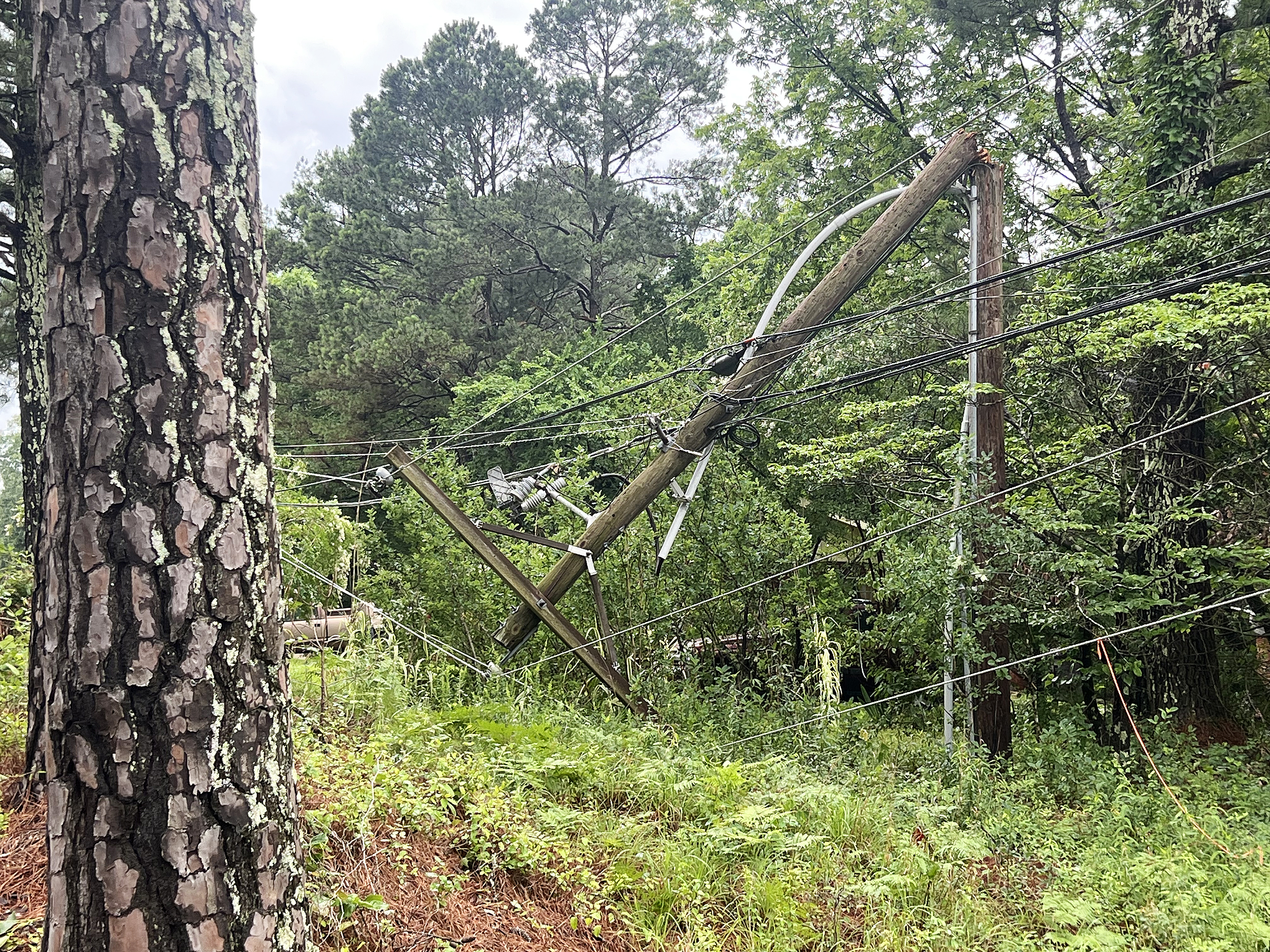 Hundreds of Grenada County residents remain without electricity following Sunday evening’s severe thunderstorm that blew strong straight line winds and heavy rains through the area.