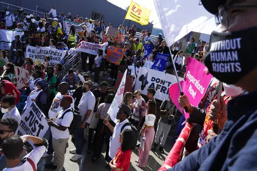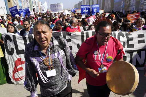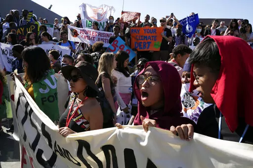 SHARM EL-SHEIKH, Egypt (AP) — Hundreds of environmental activists on Saturday called on industrialized nations at the U.N. climate summit in Egypt to pay for the impact of global warming, the largest demonstration yet that came as German officials raised concerns about possible surveillance and intimidation of delegates and other conference attendees.