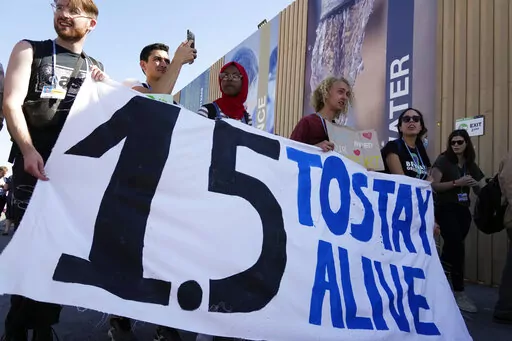 Protesters also called for drastic reductions in greenhouse gas emissions being pumped into the atmosphere. Emissions continue to rise but scientists say the amount of heat-trapping gases need to be almost halved by 2030 to meet the temperature-limiting goals of the Paris climate accord of 2015.