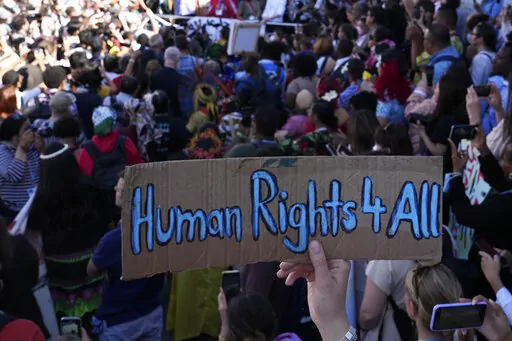 Saturday's rallies also focused on human and gender rights, with protesters saying both are linked to climate justice and called for an end to a crackdown on rights and environmental activists, especially in developing nations.