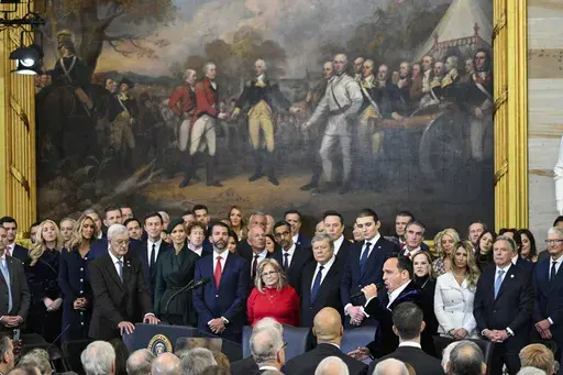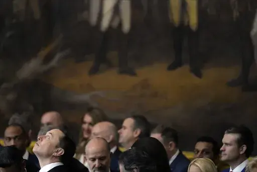 Argentine President Javier Milei and Italian Premier Giorgia Meloni are in the Rotunda. Trump broke with precedent by inviting foreign leaders to attend his inauguration.