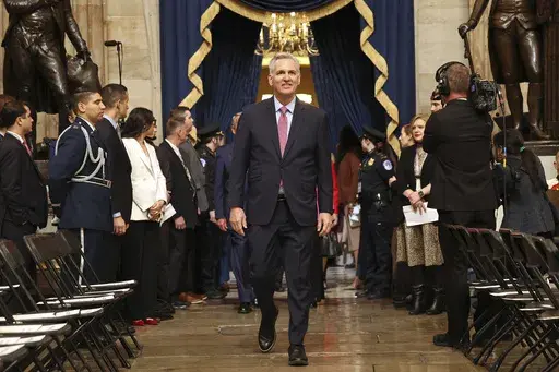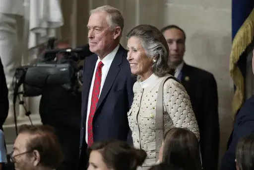 The New Yorker had a royal blue cap in hand. The House Speaker Mike Johnson, a Republican, said it’s “bright, sunny outside and bright in our heart.” Johnson said he expects “a lot” of executive orders from Trump. House Democratic Leader Hakeem Jeffries smiled and waved but declined comment.