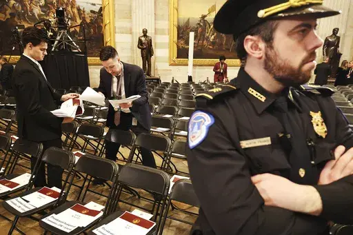 It says the luncheon after the swearing-in ceremony is the 11th to be held at the Capitol’s National Statuary Hall, and will include more than 200 guests including the president, vice president, family, U.S. Supreme Court justices, Cabinet Member-designees and members of Congressional leadership.