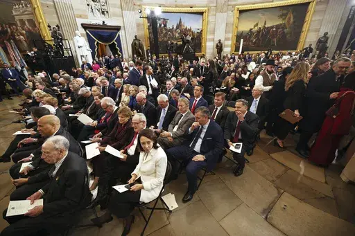 Senior government officials, tech moguls and donors are gathered inside the Capitol building, attending the swearing-in ceremony in person.