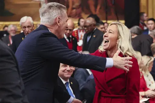 House Republican women arrived at the Rotunda wearing various shades of red, a nod to the GOP’s signature hue. Similarly, Republican men wore ties ranging from dark red to orange as they took their seats.