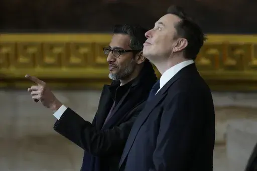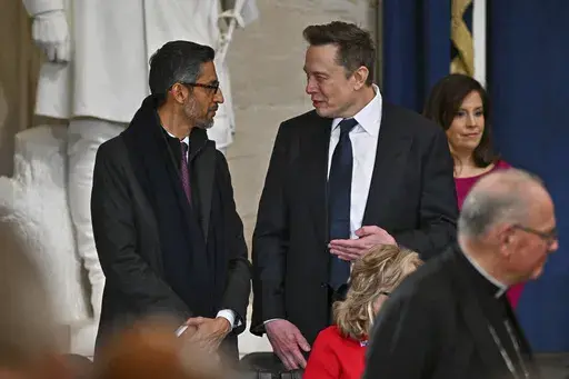 Vocal Trump ally Elon Musk, the CEO of Telsa and owner the social platform X, was seen along with Google’s Sundar Pichai and Amazon owner Jeff Bezos.