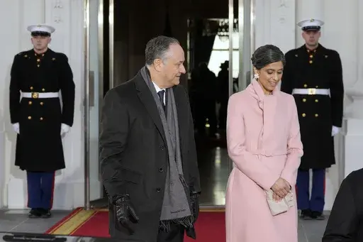 Second gentleman Doug Emhoff has exited the White House with Usha Vance, wife of vice president-elect JD Vance, to go to the Capitol.