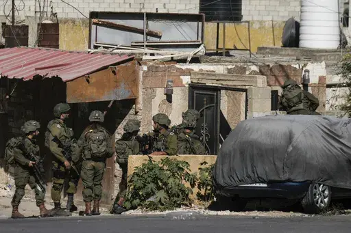 The military on Wednesday said it launched assaults around the West Bank town of Tulkarem and in two northern towns. It said it dismantled an explosives lab, a weapons manufacturing workshop and an explosives-rigged vehicle. The military said an airstrike backing troops operating in the town of Tubas killed five militants. The Palestinian Health Ministry confirmed five were killed but did not specify if they were militants or civilians.