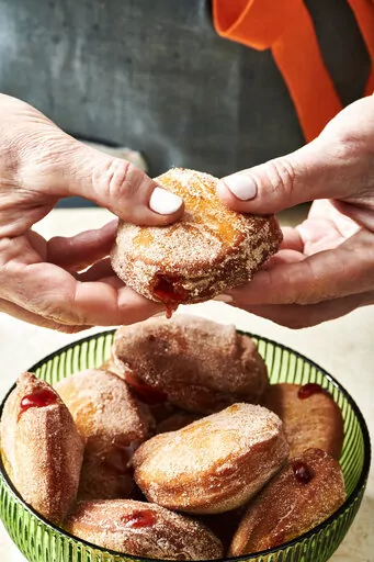 Jelly doughnuts, also known as sufganiyot, have become a classic Hanukkah treat, one of a number of foods fried in oil that are popular on the holiday ( latkes, or potato pancakes, are another).
