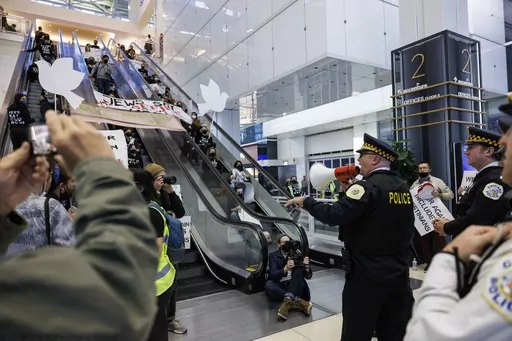 Advocacy group Jewish Voice for Peace led a similar sit-in in New York City’s Grand Central Station on Oct. 27, where a sea of protesters filled the main concourse during evening rush hour, chanting slogans and unfurling banners demanding a cease-fire as Israel intensified its bombardment of the Gaza Strip. At least 200 demonstrators were detained by New York police officers.