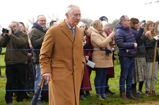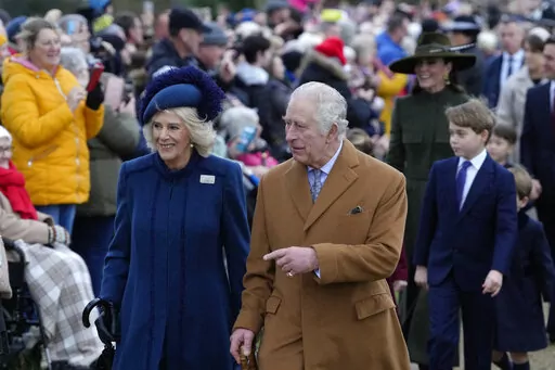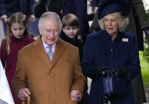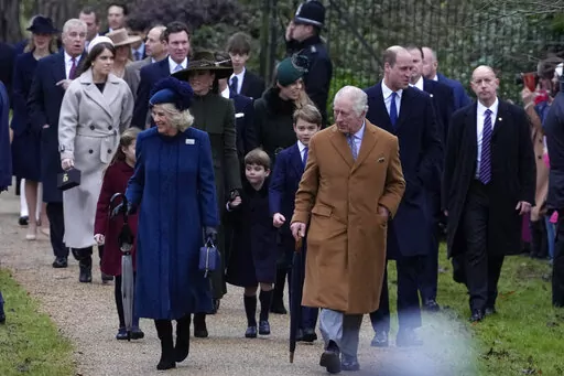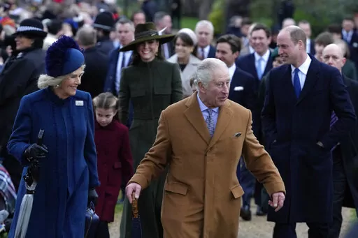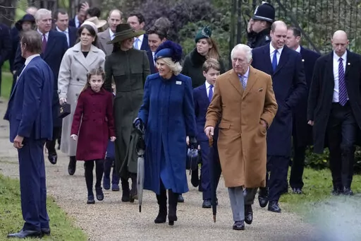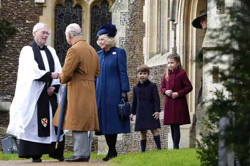The king and his wife, Queen Consort Camilla, led family members to a service at St. Mary Magdalene Church. They included Prince William, Charles' older son and heir to the throne, and William's wife, Kate, and the couple's three children, Prince George, 9, Princess Charlotte, 7, and Prince Louis, 4.