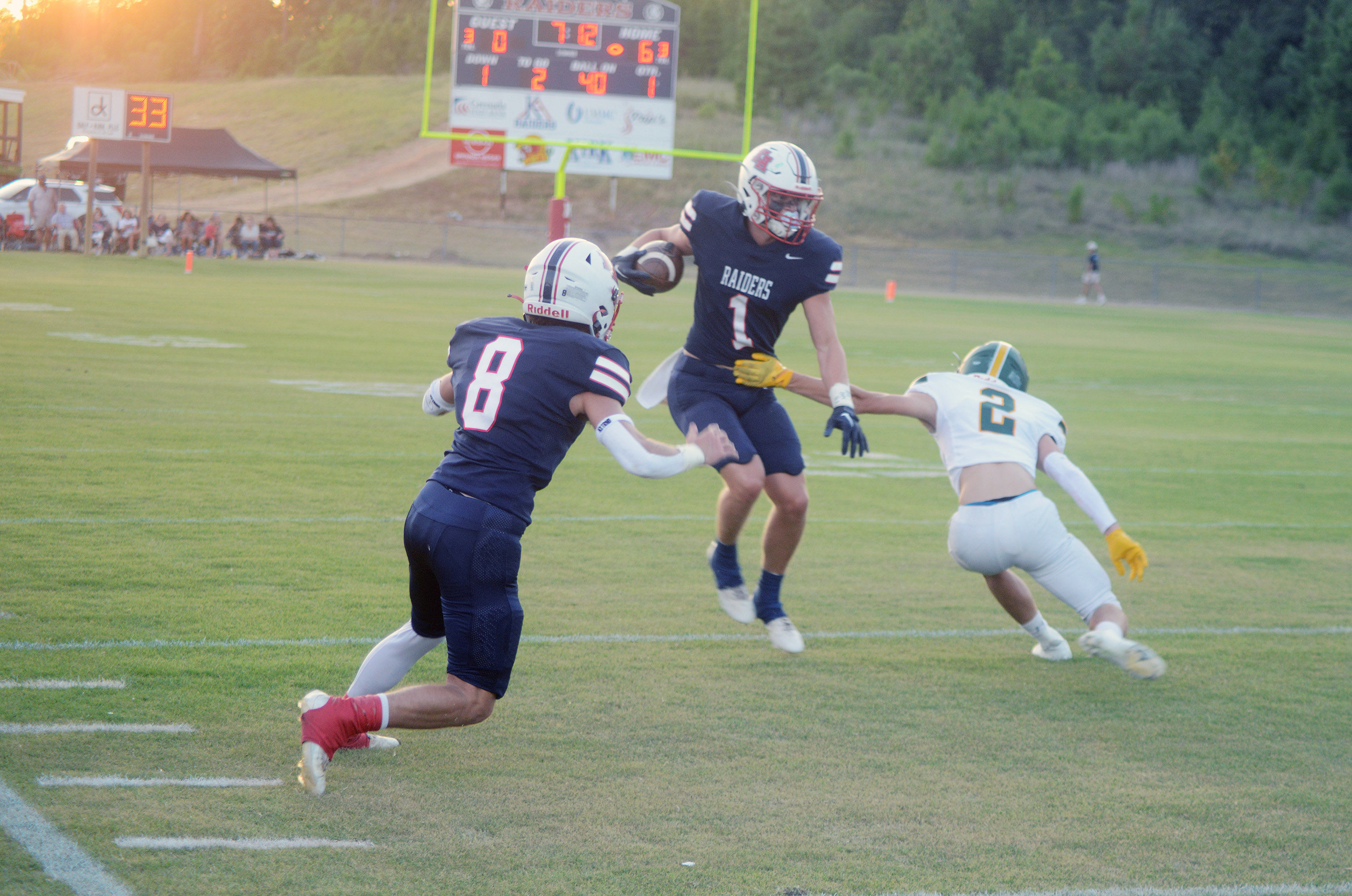 Senior Noah Jackson and junior Gage Vance lead the rushing attack for the Raiders. Jackson has 622 yards on 66 carries and 12 touchdowns, while Vance has 590 yards on 56 carries and 10 touchdowns. Classmate Holt Gober has completed 32-of-54 passes for 658 yards and five touchdowns. As a runner, Gober has 346 yards on 53 carries and has scored five touchdowns.