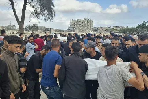 RAFAH, Gaza Strip — Israeli airstrikes on the southern Gaza city of Rafah have killed at least 22 people, including six women and five children, Palestinian health officials say. One of the children killed in the strikes overnight into Monday was just 5 days old.