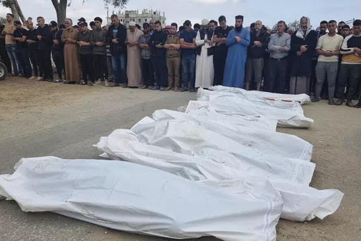 The overnight strikes hit three family homes. The first killed 11 people, including four siblings aged 9 to 27, according to records at the Abu Yousef al-Najjar Hospital, where the bodies were taken. The second strike killed eight people, including a 33-year-old father and his 5-day-old boy, according to hospital records. The third strike killed three siblings, aged 23, 19 and 12. An Associated Press reporter saw the bodies at the hospital.