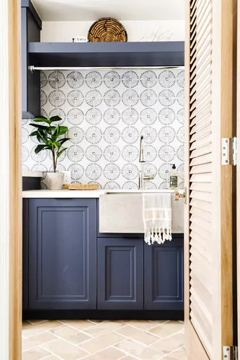 If your laundry room is in a separate spot that guests rarely see, there’s an opportunity to really personalize it. Would you prefer a pristine oasis, with calming hues and accents, or an upbeat space with bright colors and lots of pattern?