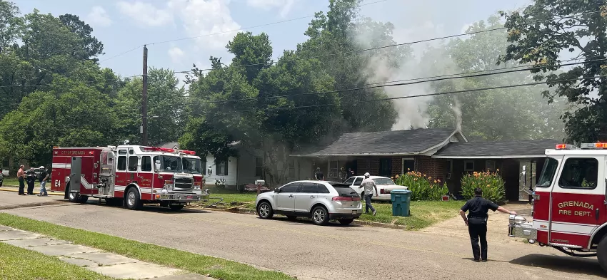 Kaunytra Loggins stood outside her family’s one-story, brick home last Wednesday, June 7, just after noon as smoke billowed from the rooftop. Firefighters with the Grenada Fire Department fought flames from outside the home and also entered the structure in hopes of containing the blaze.