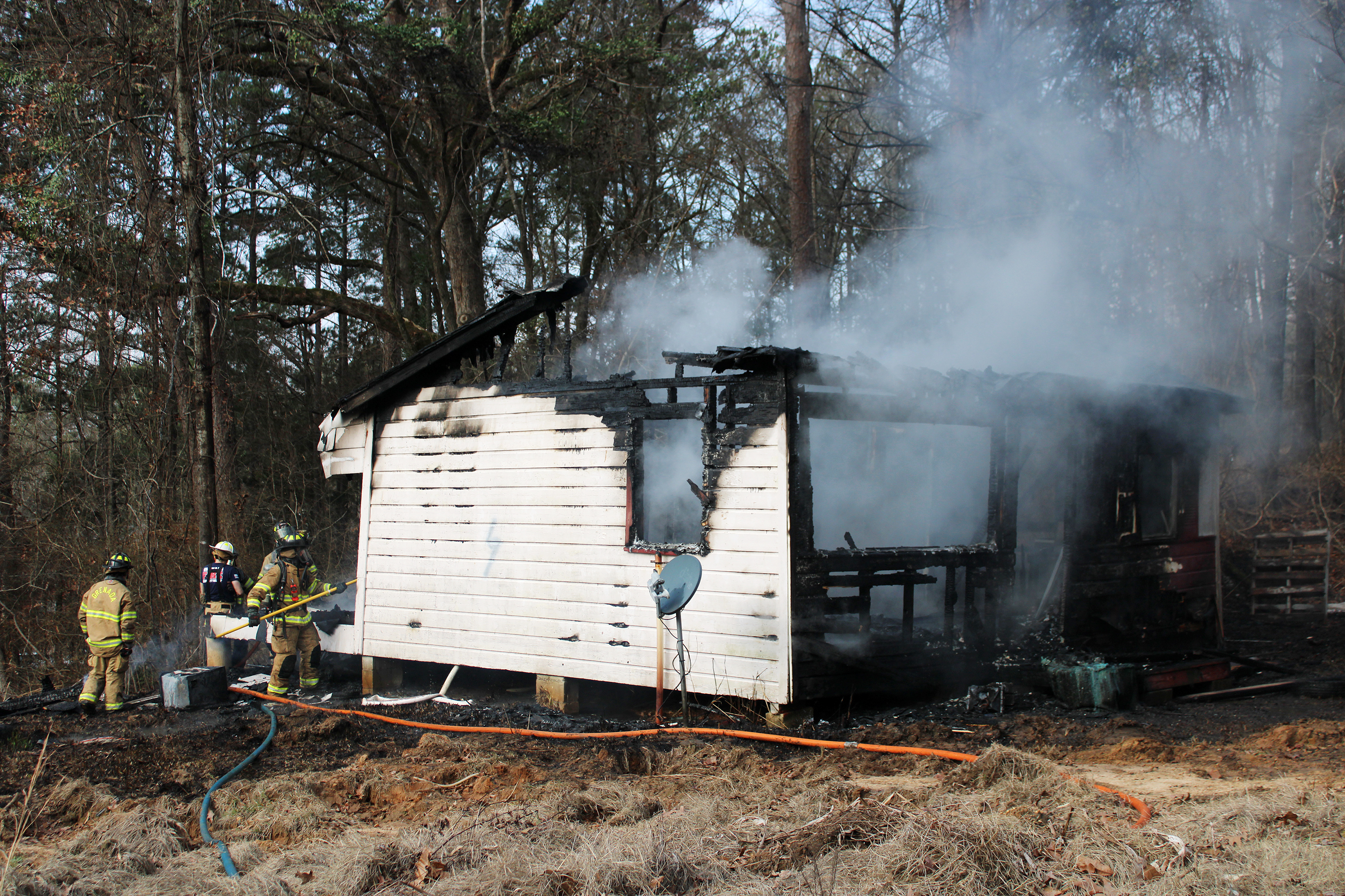 At 9:15 a.m. on Wednesday, the GFD was dispatched to a woods fire located on Pierce Drive in Grenada. The hard-to-reach location required the crews to travel around Cecil Shelton Drive to access the scene. Rescue 1 was first on scene at 9:20 a.m. and reported a fully involved house fire.