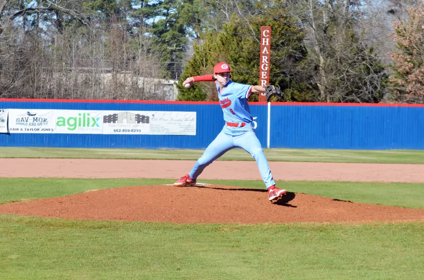 Last Saturday afternoon at home, Grenada’s varsity erased a 3-0 second-inning deficit against Bayou Academy with six runs in the bottom half of the frame to take a 6-3 lead en route to a 12-5 victory. The Chargers banged out 15 hits in the seven-inning contest.