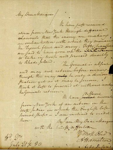 “We have just received advice from New York through different channels that the enemy are making an embarkation with which they menace the French fleet and army,” Hamilton wrote. “Fifty transports are said to have gone up the Sound to take in troops and proceed directly to Rhode Island.”
