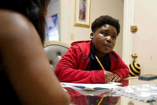 At home, J. Ryan races through multiplication problems at his dining room table. His mother watches as he lingers for several minutes on a paragraph about weather systems and struggles to answer questions about the reading.