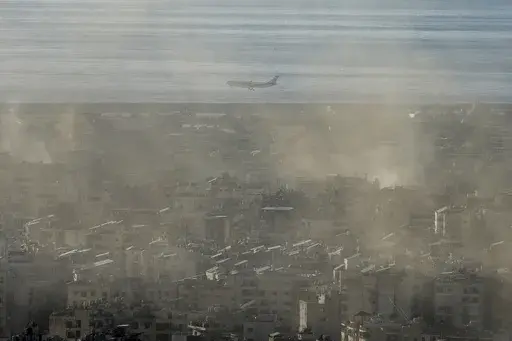 Large plumes of smoke could be seen around the airport near the Mediterranean coast, which has continued to function despite its location beside the densely populated suburbs where many of Hezbollah’s operations are based.