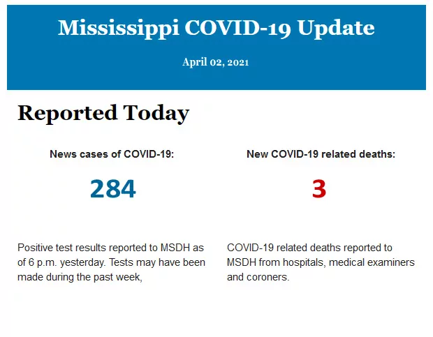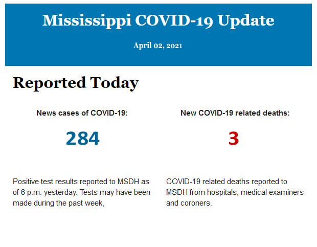 Listed below is the daily COVID-19 update for the state of Mississippi.