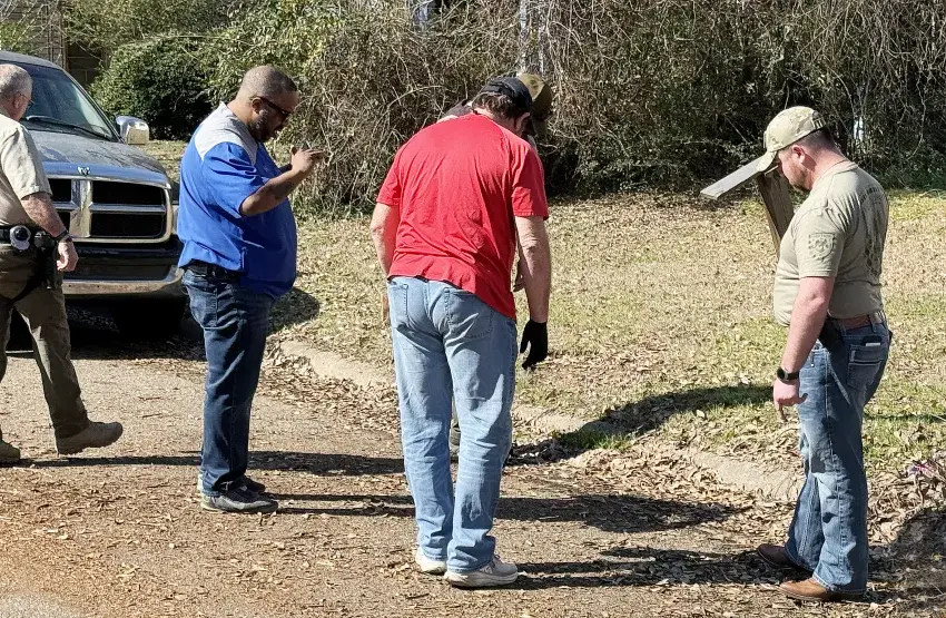 Deputies with the Grenada County Sheriff's Office assist investigators with the Grenada Police Department at the scene of a shooting Monday afternoon on Dean Drive.