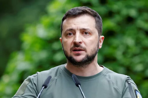 THE FACTS: The photo, taken in Kyiv last week, shows Zelenskyy filming a message that appeared as a hologram at various digital conferences. Since the beginning of the war in Ukraine, misinformation campaigns have falsely accused Zelenskyy of fleeing the country or its capital. In recent days, some social media users have misrepresented a photo of the leader filming in a studio to push the false narrative. The picture shows Zelenskyy dressed in a khaki T-shirt and standing on a set in front of a green screen. “The ukraine king was never in his own land he was using green screens.jpg,” reads the caption on the photo. One post of the photo on Twitter was retweeted over 900 times. It was also shared on Facebook. However, the photo was taken in Kyiv as Zelenskyy filmed an address that was played as a hologram at various digital technology conferences across Europe, director Martin Williams confirmed. Williams, the founder of media production company Talesmith, wrote in an email to the AP that the image was captured on June 14, and is actually a screengrab from a behind-the-scenes documentary he is making about the project. The picture was distributed in a June 16 press release about the hologram. “I directed the piece and was in the room. We built the green screen studio as part of a volumetric capture for an AR hologram,” Williams wrote. AP reporters have interviewed Zelenskyy in person in Kyiv during the war. AP reporting also shows he also visited soldiers on the front line in Kharkiv in May.