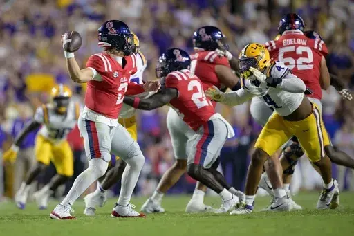 LSU sacked Dart six times, intercepted him once, recovered a fumble and had a fourth-down stop at their own 5 while holding the Rebels well below their scoring average of 44 points coming in. Bradyn Swinson had two sacks, giving him seven this season.