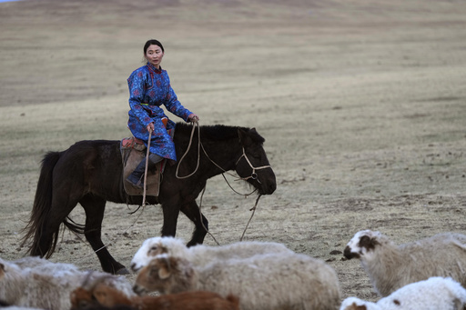 SUKHBAATAR, Mongolia (AP) — The half-crescent moon glowed in the predawn Mongolia sky as Agvaantogtokh and his family began preparing for yet another big move with their animals.